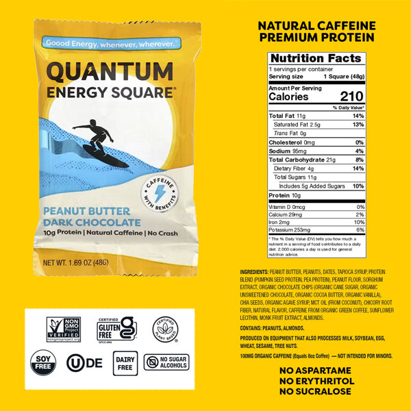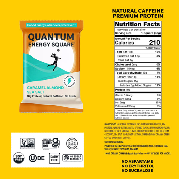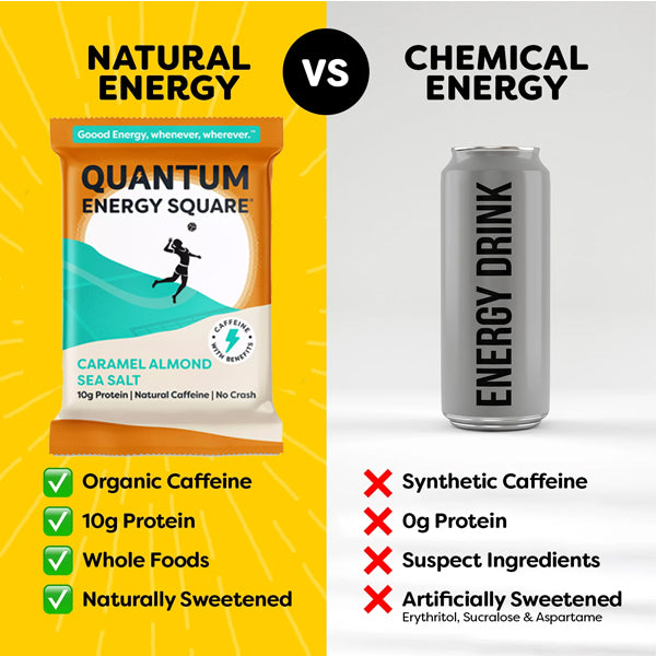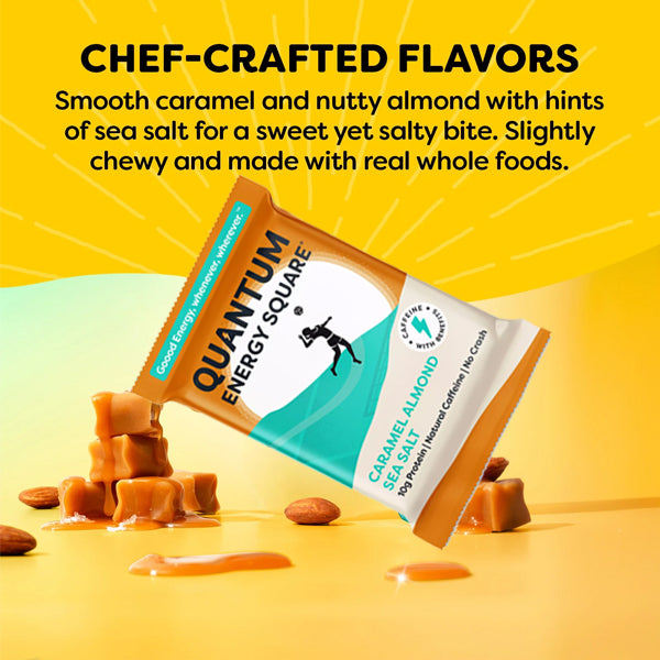Quantum Energy Squares feature a unique blend of natural caffeine and real whole foods so active customers can benefit from a more complete energy source, while avoiding the jitters and energy crash from drinking coffee by itself.