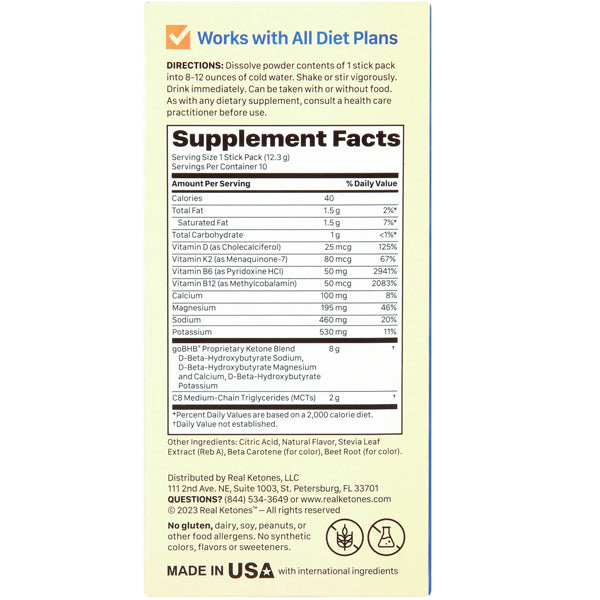Real Ketones Prime D + Daily Ketone Drink Mix Supplement Powder