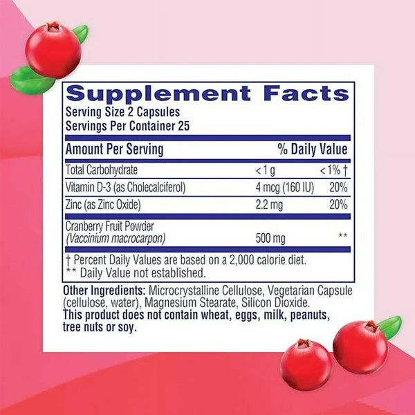 Cranberry Extract: Helps prevent urinary tract infections (UTIs) by reducing bacteria adhesion.