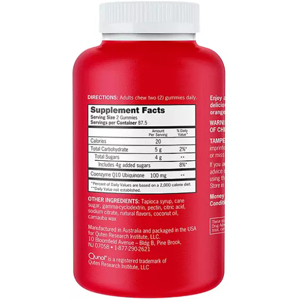 Great-Tasting Chewable Gummy: Qunol CoQ10 Gummies contain 100mg of CoQ10 in a convenient, chewable form with a delicious orange flavor.