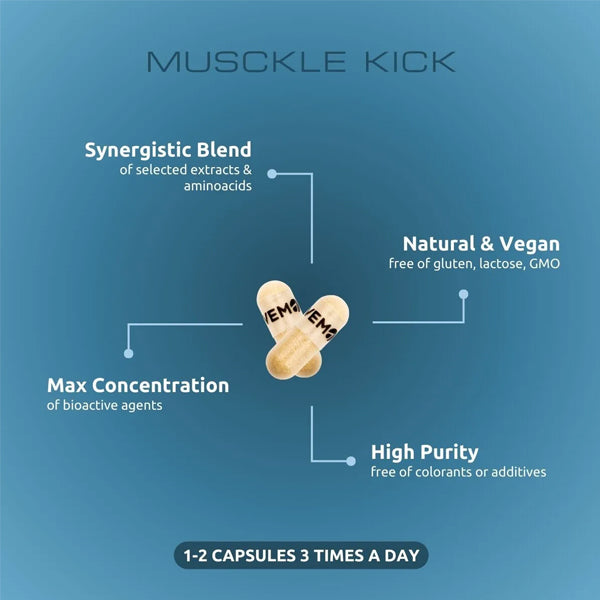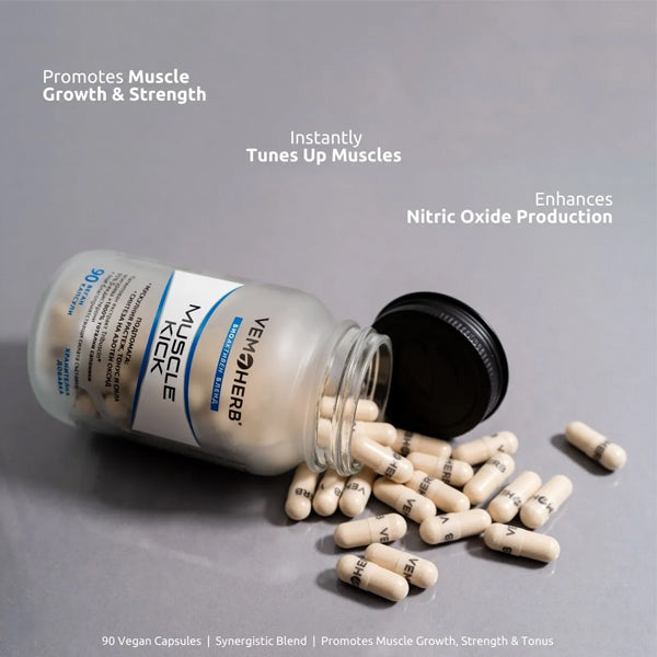VemoHerb® Muscle Kick contains a synergistic complex of herbal extracts from Tribuscin®, Maral root, Ginkgo biloba, Black pepper and the amino acid L-Arginine. This supplement is intended to support overall muscle function, strength, and tonus.*