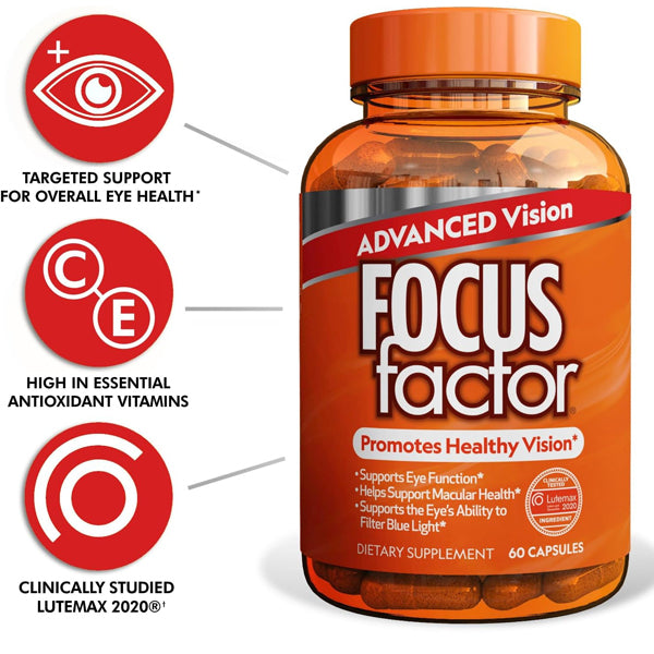 As we get older, it is essential to take care of our eyes. Like other parts of our body, your eyes need proper nutrition to perform at their best. Focus Factor® Advanced Vision features lutein and zeaxanthin, natural carotenoids that have been shown through research and clinical studies to support eye health and the eye's ability to filter blue light.*