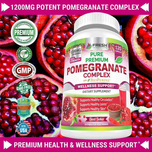 Fresh Healthcare’s Premium Pomegranate Extract Supplement is the ultimate wellness support packed with nutritional benefits and ingredients that have been used for centuries. Known for its hundreds of amazing, edible seeds called arils, Pomegranate help support: