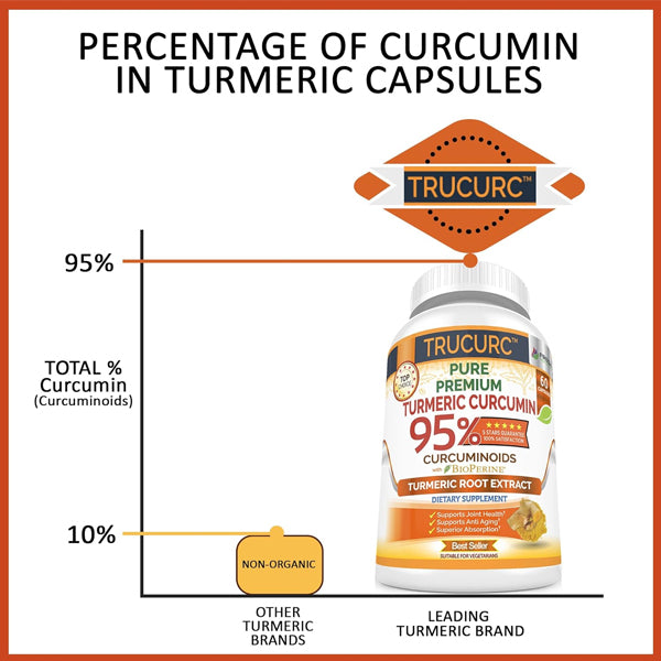 Fresh Healthcare's Trucurc Turmeric Curcumin contains Pure Premium 95% Curcumin Curcuminoids, unlike many other Turmeric Supplements that contain ONLY 3-5% Curcumin making TRUCURC 20 X MORE POTENT so don't settle for less!