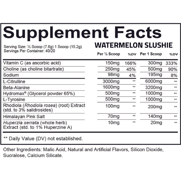 6g L-Citrulline for enhanced blood flow and intense pumps.