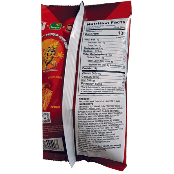 Our Hi Pro! Protein Chip is not fried, no added preservatives, Non-GMO; giving you a healthy, tasty, dietary fiber and 14g of protein.